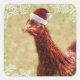 Pegatina Cuadrada Wintery Snowflake Santa Hat Chicken