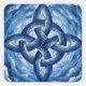 This whimsical sticker features an enchanting acrylic and oil painting of a Celtic Witches Knot (also known as a magic knot) central to the composition. The knotwork is rendered in textured brushstrokes of sapphire blue, deep blue, white, and grey, giving it a dimensional, hand-painted look. The knot is set against a dynamic swirling cloudscape and a fantasy sky that radiates outward, blending light blue, white, and darker hues. This piece evokes themes of protection, mystic power, and the element of air. It is a stunning example of spiritual art and pagan imagery, perfect for collectors of unique fantasy wall art and or witchcraft decor.