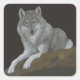 Un cuadro pastel de un majestuoso lobo gris adorna este pegatina.