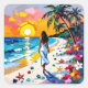 Pegatina Cuadrada Woman on Beach Tropical Scene