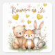 Pegatina Cuadrada Woodland Bear Fox Bunny Yellow Hearts Neutral