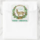 Pegatina Cuadrada Wreath de Navidades personalizados de tos de venad