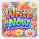 A vibrant energy of creativity with the bold "Write Now" message, beautifully set against a backdrop of colorful flowers that inspires joy and motivation
