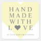 Pegatina Cuadrada Yellow Heart with Handmade with Love Quote