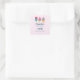 Pegatinas de producto con un ilustracion de 3 helados diferentes. Popsicle azul-verde con goteo de fresas y rociadores coloridos. Una pala de sandía. Un cono con capas de deliciosos helados en rosa y menta. Todo con sonrisas kawaii lindas.