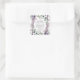 El pegatina cuadrado de las escrituras inspiradoras representa flores silvestres de acuarela floridas en tonos suaves de color violeta polvoriento, rosa y verde suave. Presenta la Biblia Verse Zephaniah 3:17, "El SEÑOR que DIOS tienes entre ti, el poderoso, salvará; se deleitará contigo, te callará con Su amor, se alegrará de ti cantando." *