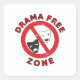 Un cartel de tránsito con las palabras: zona libre de dramas. Texto con imágenes de máscaras griegas de comedia y tragedia. Efecto angustiado aplicado al diseño.