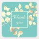 Romántico verde claro con hojas doradas gracias pegatina cuadrado por cartas de moda, regalos elegantes, boda elegante, y por hermosos cumpleaños y para pequeños negocios.