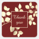 Romántica tierra marrón con hojas doradas gracias pegatina cuadrado por cartas de moda, regalos elegantes, boda elegante, y por hermosos cumpleaños y para pequeños negocios.