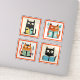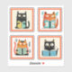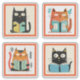 Pegatina Cuadros Nerdy Cats Leyendo Libros Whimsical Stamp