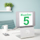 La basura puede numerar o el número del cubo de rueda en negrita para pegarse al cubo de basura o al de ruedas. 8" x 8". Número de un solo dígito pero irá hasta los dos dígitos. Color verde.