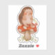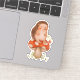 Alegre diseño de pegatina de vinilo con un adorable erizo sentado en un caprichoso hongo, sosteniendo un ramo de flores en un encantador ilustracion acuático.