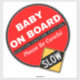 Cuidado con el bebé a bordo (advertencia tener cuidado) - Las pegatinas de "bebé a bordo" son pequeñas señales adhesivas que normalmente se colocan en la ventana trasera de un vehículo para alertar a otros conductores de que hay un niño en el coche. Estas pegatinas tienen como objetivo animar a otros conductores a ser más prudentes y conscientes del coche que lleva a un niño. Son una medida de seguridad popular entre padres y cuidadores.
