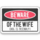 Pegatina Cuidado con el perro Esposa es amigable Gracioso S
