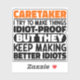Funny Caretaker Dice "Cuidadora Intento Hacer Las Cosas Idiotas Prueba Pero Siguen Haciendo Mejores Idiotas". Agarra este divertido diseño de Caretaker como un regalo gracioso para una madre, papá o amigo formidable.