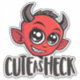 Personalizado vectorial ilustracion de un diablillo diabólico con ojos grandes con texto Cute as Heck. Palabras clave: diablo, caramba, lindo, demonio, malvado, halloween, monstruo, cuernos, horror, adorable, dulce, diabólico, diabólico, diabólico, precioso, encantador, atractivo, encantador, delicioso, querido, querido, ganador, ventoso, encantador, encantador, atractivo, bonito, adorno