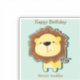 Diseño azul león lindo. Agrega tu nombre en este lindo animal león marrón sobre fondo azul..