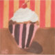 Art print of a cupcake with vanilla frosting and a cherry on top.