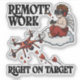 A playful and modern illustration of Cupid working remotely. Seated on a cloud, Cupid wears FPV goggles and operates a drone with a remote controller. The drone shooting heart-shaped arrows towards a target, symbolizing precision and efficiency. The text “Remote Work” and “Right on Target” accompanies the design, making it perfect for humorous Valentine’s Day themes or a tech-savvy audience
