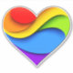 SlipperyJoe el orgullo de Joe curvas de corazón forma 3-D apariencia tridimensional arcoiris celebra el amor colores atractivos visualmente atractivos los regalos de orgullo gay LGBTQIA naranja rojo amarillo verde azul violeta estilo onda suave vibrante movimiento dinámico diseño gráfico