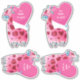 Una adorable jirafa rosa con manchas rojas en el corazón se alza frente a un gran corazón rosado. El texto blanco en el corazón dice "¡Soy ALTO contigo!". Hay cuatro imágenes separadas en una hoja, y las dos imágenes inferiores son ligeramente más pequeñas que las superiores. *Gracias a Digital Artsi en etsy.com por la imagen de la jirafa usada en este diseño.