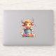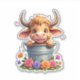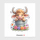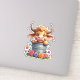 Pegatina Cute Baby Highland Cow With flowers Calf Animal co