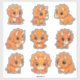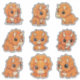 Bring home the cutest dino in the land with this adorable set of custom-cut vinyl stickers! This collection features nine super cute illustrations of baby Triceratops dinosaurs in various sitting and playful poses, all rendered in a charming orange hue. The chunky, friendly style makes these tiny prehistoric creatures perfectly appealing for younger children and any little paleontologist.
