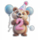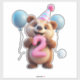 Pegatina Cute Birthday Bear With Party Hat And Balloons