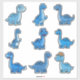 Explore a gentle prehistoric world with this charming set of custom-cut vinyl stickers! This collection features nine super cute illustrations of baby Brontosaurus (long-neck) dinosaurs in various standing and grazing poses, all rendered in a lovely blue hue. The soft, friendly style makes these tiny, long-necked creatures perfectly appealing for younger children and any little paleontologist.