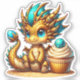 Pegatina Cute Chibi Oro y Dragón Azul con Cubierta
