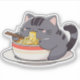 Pegatina Cute Chubby Cat Enjoying Ramen Noodles