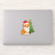 Pegatina Cute Corgi Dog in a Red Hat with Christmas Tree