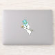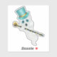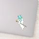Este pegatina de vinilo es un bonito fantasma blanco con grandes ojos azules con un sombrero de tope verde azul oscuro con una cinta dorada sosteniendo una caña negra ornamentada coronada con un cráneo de oro.