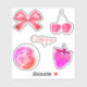 Pegatina Cute Girly lazo estético rosa con nombre de cereza