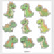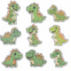 Roar into fun with this adorable set of custom-cut dinosaur vinyl stickers! This collection features nine super cute illustrations of baby T-Rex dinosaurs in various playful poses, all rendered in bright green and orange hues. The cartoonish, friendly style makes these prehistoric creatures perfectly appealing for younger children and any little paleontologist.