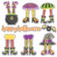 Celebrar Halloween con este lindo conjunto pegatina de imágenes de piernas brujas de colores brillantes en varios disfraces y posiciones. Cada imagen tiene un par diferente de zapatos de brujas salvajes. Junto con las imágenes de las piernas hay un murciélago de ala dorada y el texto en el naranja "Feliz Halloween". *Gracias a Huckleberry Hearts por las imágenes usadas en este conjunto de pegatinas.