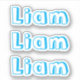 Pegatina de nombre azul para niños pequeños.