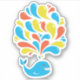 Pegatina de ballenas con un colorido ilustracion de una sonriente ballena personalizado salpicada de brillantes remolinos azules, amarillos y naranjas. Este lindo pegatina es genial para todos los chicas amantes de las ballenas que también les encantan los colores vivos y divertidos.