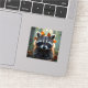 Un adorable mapache sentado en un bosque en el otoño cubierto de otoño deja pegatina.