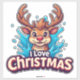 Pegatina Cute Reindeer Mascot With 'I Love Christmas' Text