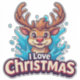 Adorable cartoon reindeer with a red nose bursting from a blue splash and bold "I Love Christmas" lettering, perfect for cheerful holiday cards, posters, seasonal promos and festive branding.