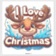 Pegatina Cute Reindeer Mascot With 'I Love Christmas' Text