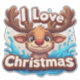 Adorable cartoon reindeer with a red nose bursting from a blue splash and bold "I Love Christmas" lettering, perfect for cheerful holiday cards, posters, seasonal promos and festive branding.