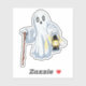 Pegatina Cute Spooky Ghost with Lantern and Wooden Cane