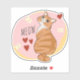 Ilustracion con asientos y sonrientes adorables de gato naranja, con diseño de texto de mimo y decoración de corazones y patas rojas para los amantes del gato