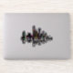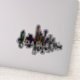 Una obra de arte de estilo callejero que presenta la ciudad de Dallas, Texas cubierta de graffiti con una reflexión de tinta negra.