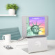 Dama Libertad y amanecer. El texto se puede personalizar.