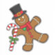Un ilustracion de un hombre de pan de jengibre feliz con un sombrero de cabeza y un bastón de caramelo. Durante las celebraciones de los Navidades, siempre hay pan de jengibre y caña de caramelo. Hacer pan de jengibre es una manera de relacionarse con la familia y hacer felices a los niños.