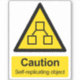 Precaución: objeto autorreplicante. Colocar en impresoras 3D, cortadores láser, tornos, molinos, máquinas herramienta, máquinas de recoger y colocar, laptops y todos los demás objetos que hacen otros objetos. Descargo de responsabilidad: por razones de seguridad, este pegatina no se auto-replica.