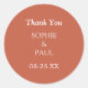 Esta elegante pegatina de agradecimiento es fácil de personalizar con los nombres de la pareja y la fecha de la boda, utilizando la plantilla de personalización en línea antes de realizar el pedido. El texto de "Agradecimiento" para el encabezado también es fácil de personalizar en línea antes de realizar el pedido, en caso de que desee cambiarlo a un texto diferente.